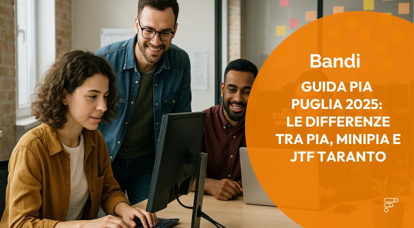 Nella provincia di Taranto sono attivi tre bandi del Just Transition Fund: Tecnonidi JTF Taranto (aperto dal 29 gennaio 2026), PIA Taranto e MiniPIA Taranto (entrambi aperti dal 5 luglio 2025). Sono i principali bandi Taranto per startup, PMI e micro imprese. I bandi PIA e MiniPIA standard della Regione Puglia sono stati chiusi a marzo 2026, ma le versioni JTF dedicate a Taranto restano operative a sportello.